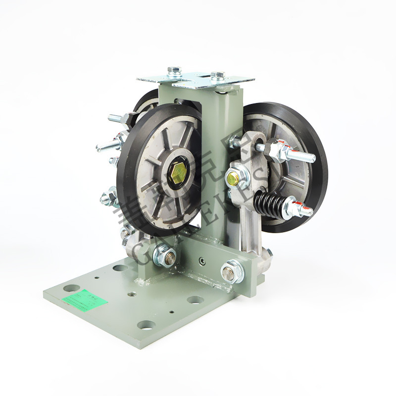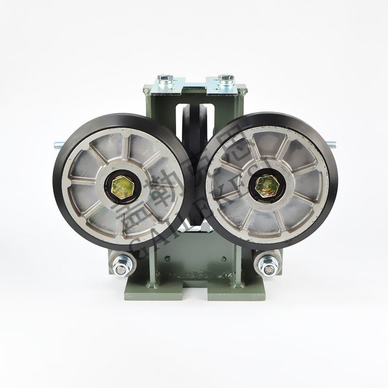 Whether the shoe lining of rigid sliding guide shoes or elastic sliding guide shoes is made of iron or nylon lining, there is still a significant frictional force between the shoe lining and the guide rail during elevator operation. This frictional force not only increases the load on the traction machine, but also is one of the causes of vibration and noise during the operation of the elevator car. In recent years, roller guide shoes have been used in elevator products to reduce friction between guide rails and shoes, save energy, and improve ride comfort. The roller guide shoe is mainly composed of two side guide wheels and one end guide wheel. The three rollers clamp the guide rail from three aspects, allowing the car to run up and down along the guide rail. When the car is running, the three rollers roll simultaneously to keep the car running in a balanced state. In order to extend the service life of the roller and reduce the noise generated during rolling friction between the roller and the guide rail working surface, the outer edge of the roller is generally made of wear-resistant plastic material and does not require lubrication during use like sliding guide shoes. |